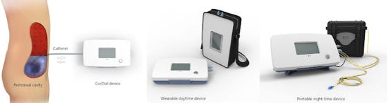 The system validated in the project allows renal patients to dialyze conveniently and continuously at home or at work, independently from a fixed water supply, up to 24 h/day. It is believed that the improved clearance and low glucose load eliminates the current drawbacks of PD (low efficacy, glucose load), offering health benefits and quality of life (fitness, mobility) while reducing medical costs (less medication, dialysis at home lowers costs). It is expected that it can successfully compete against costly in-center hemodialysis treatments.